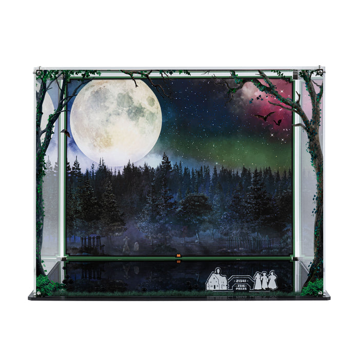 Create your spellbinding display for the LEGO® Ideas Hocus Pocus Sanderson Sisters' Cottage set with our range of display cases. Our Premium Printed display case features an eerie background and base print which creates a spellbinding and immersive display for your build.