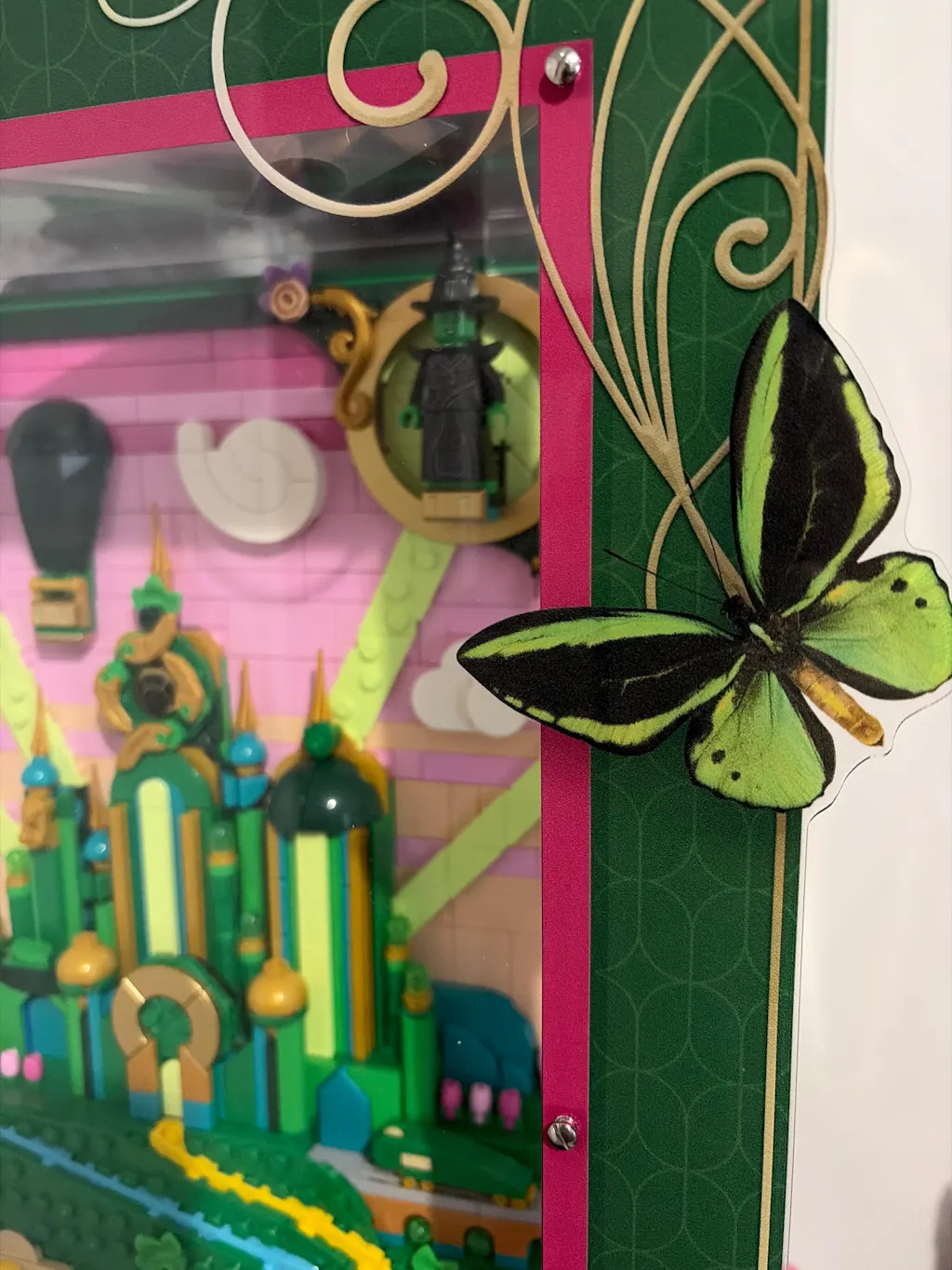 Featuring a beautiful printed front panel that elegantly frames your build, this fantasy decor display evokes the adventures from the Wicked movies.