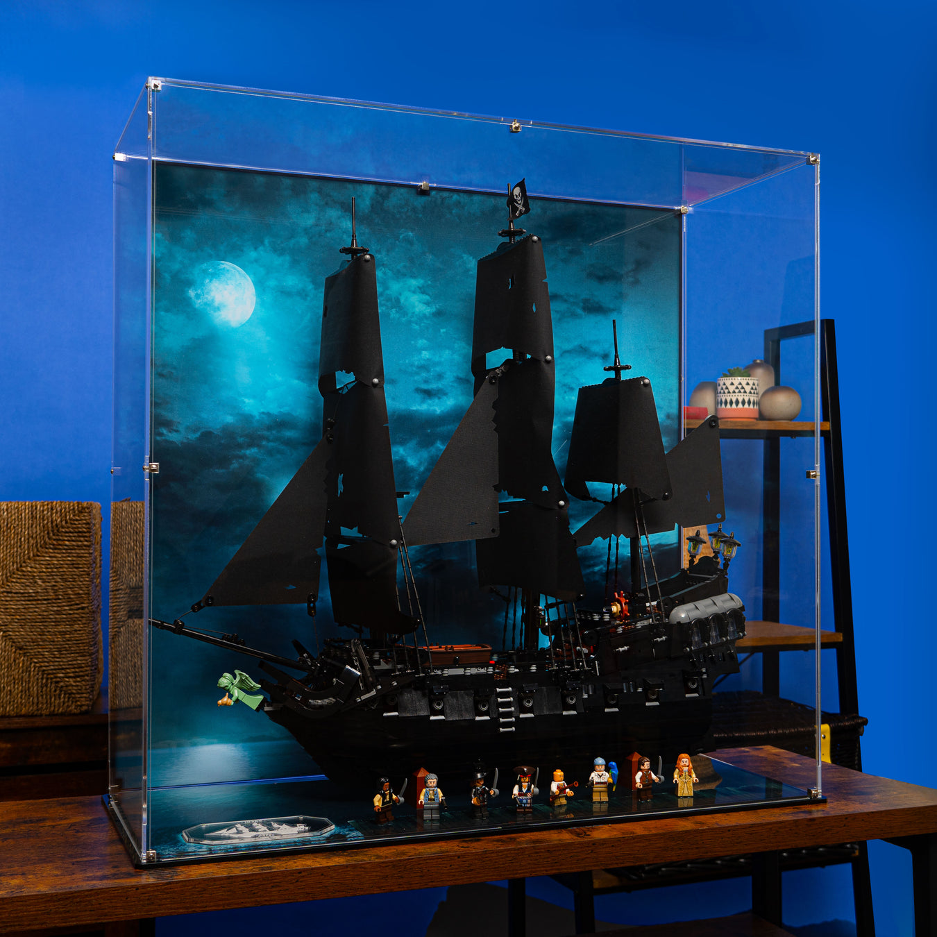 Set sail on a swashbuckling adventure with our Premium Printed and Printed display cases for LEGO® Icons: Captain Jack Sparrow's Pirate Ship. Crafted from premium acrylic and enhanced with exclusive backgrounds, our display case is the ultimate way to showcase and protect your treasured build.