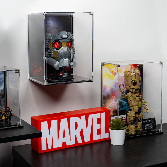 Elevate, showcase and protect your LEGO® Marvel Star Lord’s Helmet with our bespoke wall mounted case.