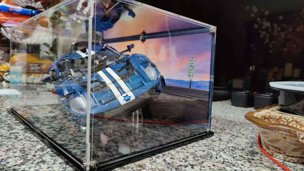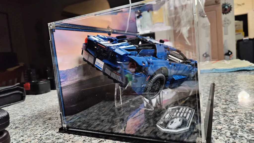 I spent a week building my Ford GT because I wanted it to be perfect. A few weeks later, I received the perfect accessory for it. This Display Case from Wicked Brick. It holds mt Ford GT just right so it can be viewed from different angles and it keeps my work dust free. The perfect display case for any LEGO build!