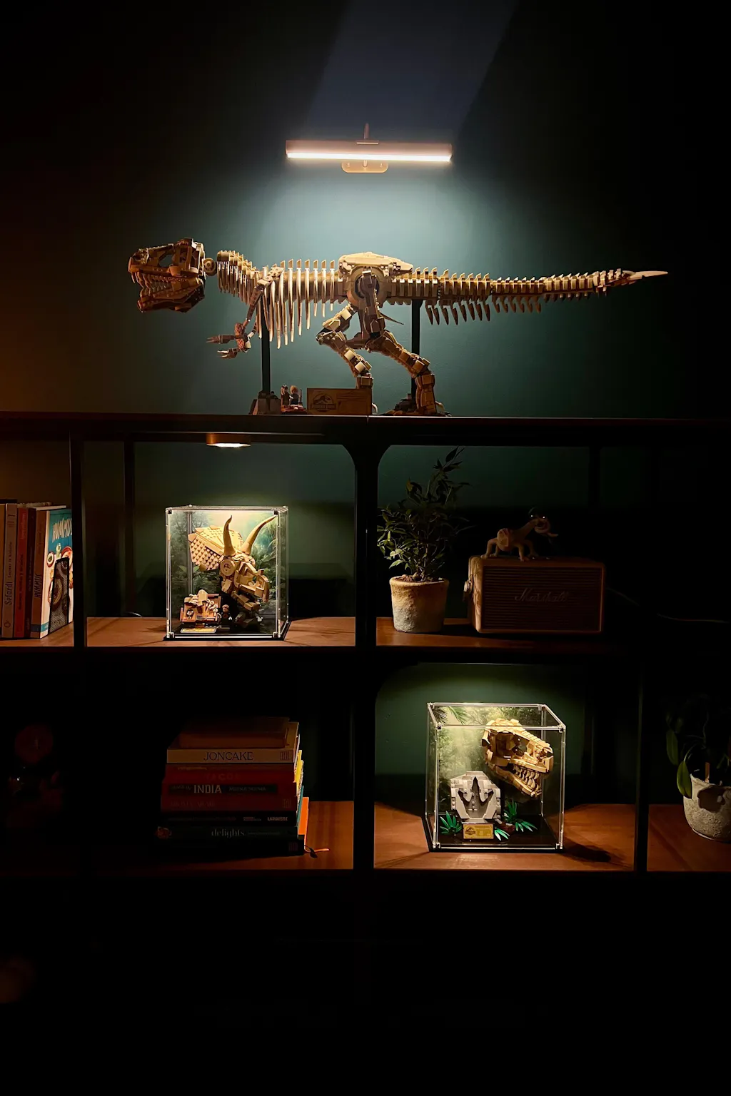 Amazing display case for my trex skull, bit on the pricy side but well worth the cost for the quality, fully recommend to anyone who has a lego addiction. On a side note Perfect for a bookends for video games aswell 😅