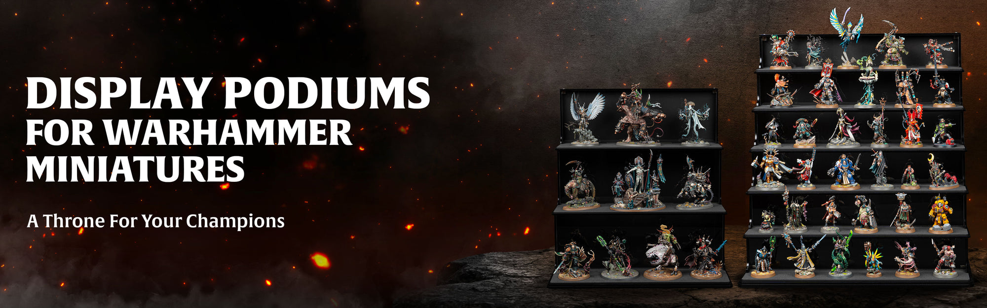 Show your Warhammer collection with our premium display podiums, designed to showcase the intricate details of your favourite miniatures. Whether you're a commander of the stalwart Space Marines, the enigmatic Eldar, or the relentless Tyranids, our stands provide the perfect stage for your army. Highlight iconic units like the Blood Angels' Sanguinary Guard, the stealthy Kill Team operatives, or the formidable Grey Knights. Crafted for collectors and hobbyists alike, our podiums ensure that every model, from the towering Dreadnoughts to the agile Ork Boyz, is presented in all its glory. Enhance your display and let your miniatures command attention both on and off the battlefield.