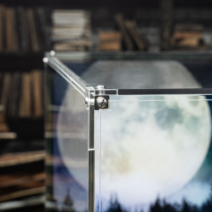 3mm crystal clear Acrylic display case, assembled with our uniquely designed screws and connector cubes, allowing you to easily secure the case together.