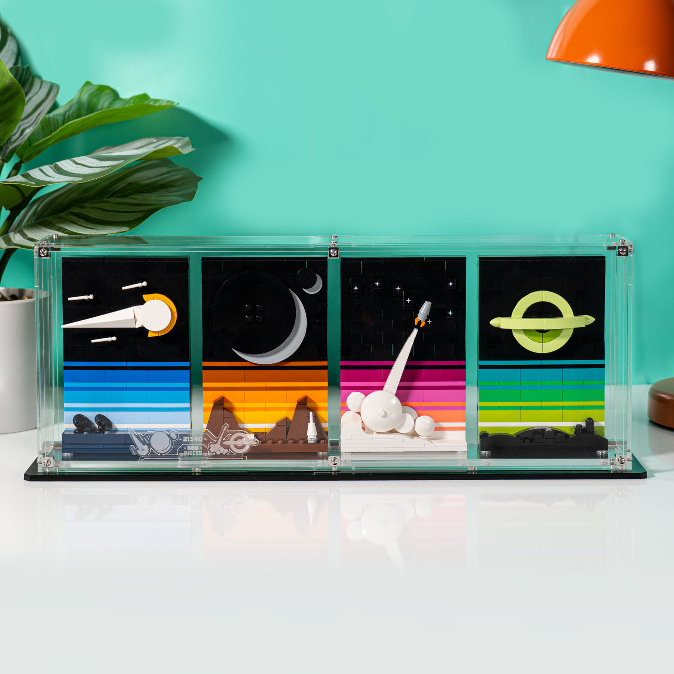 Create your dream display for the LEGO® Ideas: Tales of the Space Age set with our bespoke display case. Our display case has been specifically designed for the set and is crafted from premium Acrylic. The case has been designed to keep your set 100% dust free and protected. Choose between a wall mounted or desktop configuration for your display. Wall mount your display with the included pin holes in the back panel or attach the additional base to create a secure desktop display. Our included acrylic plaque adds a finishing touch to the display showcasing both the set number and piece count.