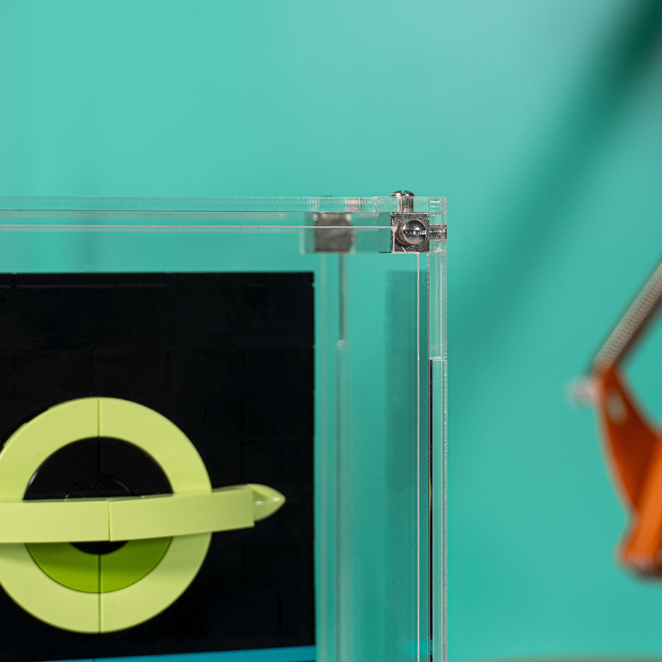 • 2-in-1 solution to display your LEGO® on your desk or on the wall. The acrylic display case easily locks in to the base plate with high-strength magnets to secure it in place.