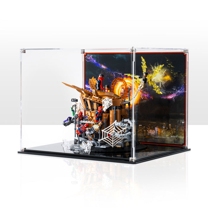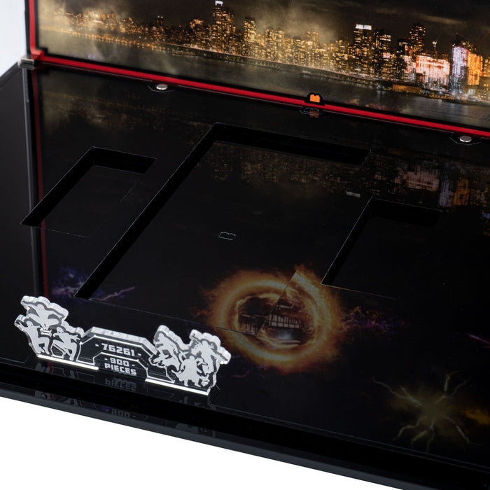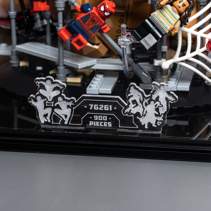 Side note about my specific set: the plaque stating 900 pieces is actually not accurate, because I went and included Sandman from the #76280 Sandman battle set (and a couple extra pieces from that set, such as the Lizard minifig) in with mine, as displayed in the images below. Before purchasing I was mildly worried that the case would not be able to fit around the set if Sandman was included; as you can see, that was a totally unfounded worry. It looks amazing!!