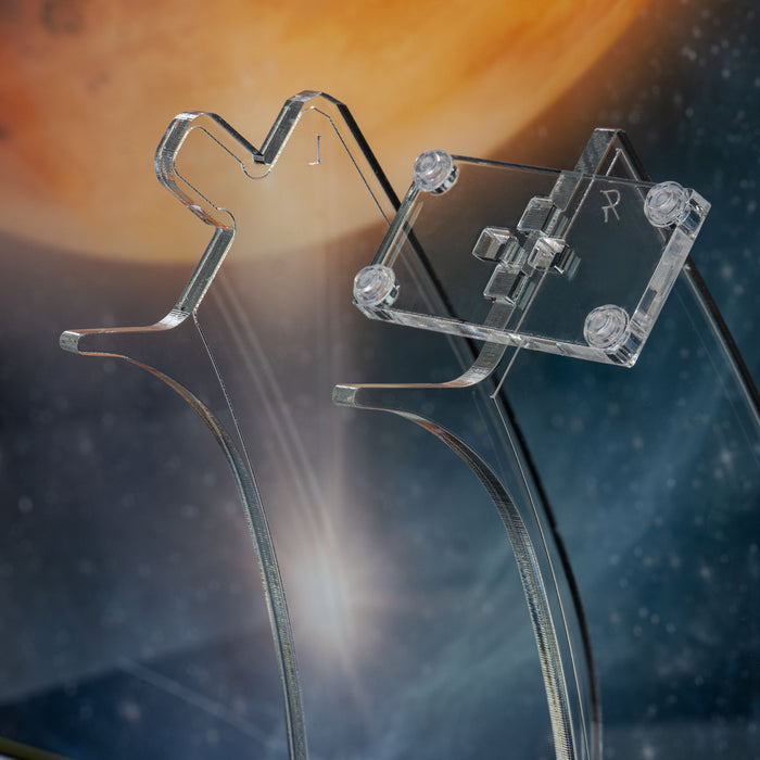 Create your dream display for the LEGO® Star Wars: UCS X-Wing Starfighter™ set  with our bespoke display case. Our display case has been specifically designed for the set and is crafted from premium Acrylic. The case has been designed to keep your set 100% dust free and protected. Our vertical stems and top plate attach securely to the underside of your Starfighter, holding it at a dynamic, space saving angle. Embedded studs in the base hold your Minifigure alongside the ship. Our included acrylic plaque adds a finishing touch to the display showcasing both the set number and piece count. Take your display to the next level with our in-house designed Star Wars inspired background.