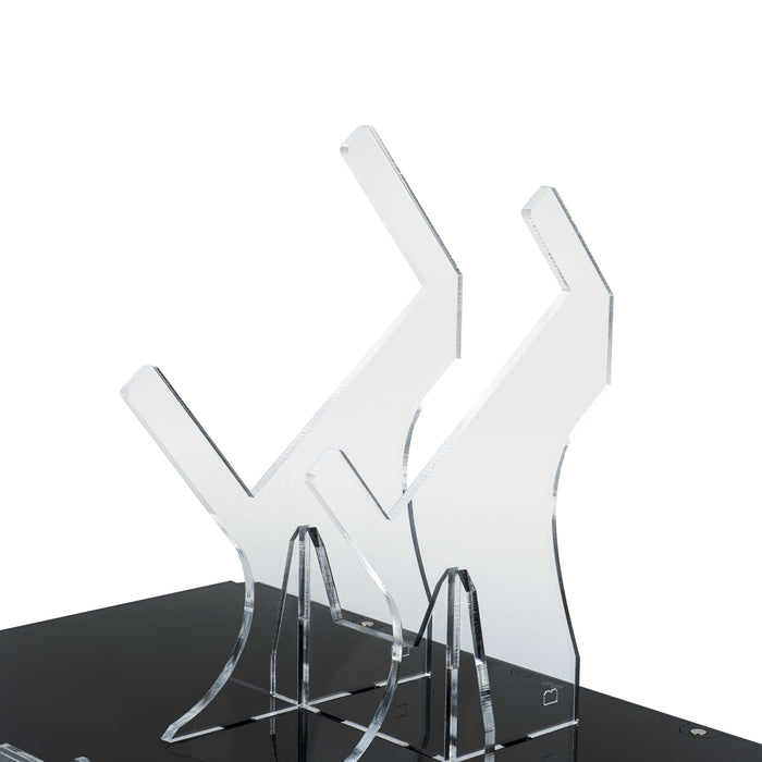 • 5mm black high gloss premium acrylic base with 5mm crystal clear angled stems.