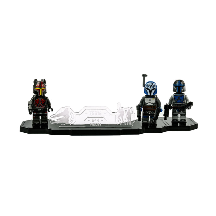 Display your LEGO® Star Wars™ Mandalorian Starfighter™ in flight alongside its crew with our bespoke display stand.