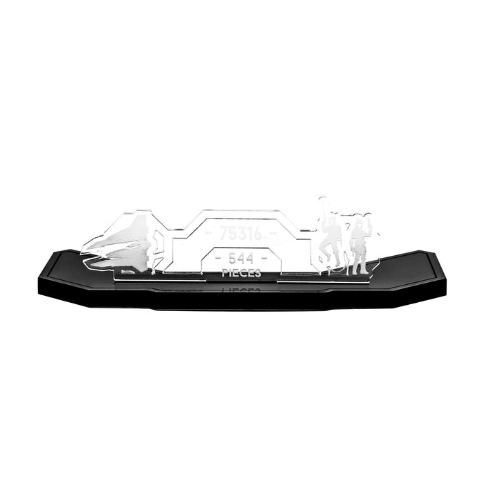 Showcase and hold your LEGO® Star Wars™ Mandalorian Starfighter™ set in a dynamic flying position with our bespoke display stand. Rotate your ship on the stand to hold it in a vertical or horizontal flying configuration. Crafted from premium Acrylic, our stand has been specifically designed for this set. Our included add-on piece sits at the front of the stand and features embedded studs to hold your Mandalorian Minifigures in place below the ship. The included clear informational plaque slots securely in place and showcases the set number and piece count.
