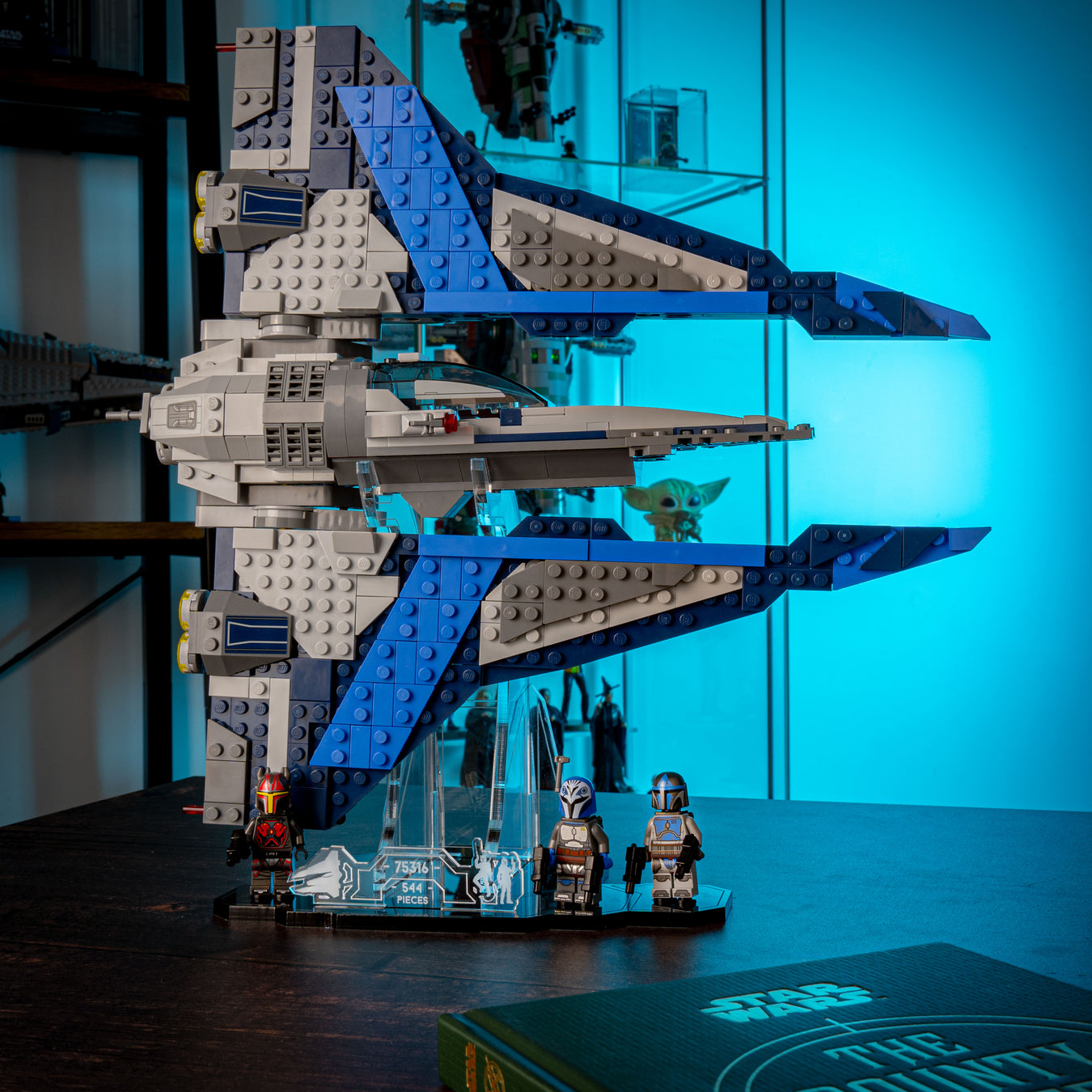 Great way to display my Mandalorian Fighter and mini figures. Allows me to show it off next to my other sets and not look so crowded.