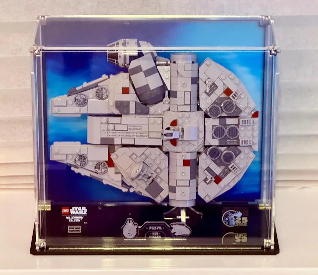 We’ve created a vertical display case that compliments the LEGO Star Wars Millennium Falcon™ starship from Star Wars: A New Hope.