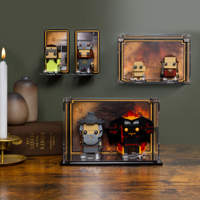 Showcase, protect, and enhance your LEGO® Brickheadz: Frodo™ & Gollum™ set with our bespoke wall mounted display case.