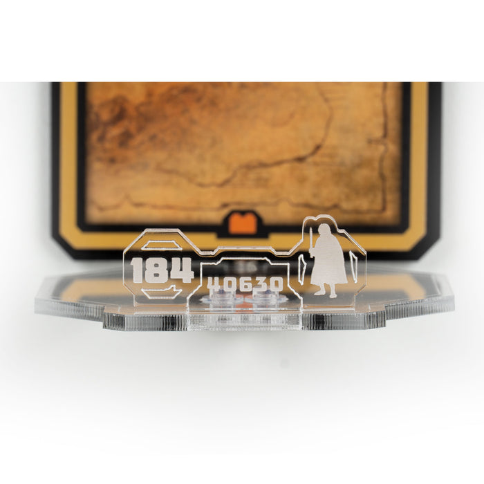 “For Frodo™ & Gollum™ I took inspiration from one of the final scenes from the series, taking place inside Mount Doom. As the scene is quite a dramatic one, I wanted to reflect this with the background. I opted to use fire as the main element, making the overlaid map look like it's burning away. The bright orange flames contrast well with the dark mountain walls and the warm glow around the platform's edge helps to convey the intensity of the location.”