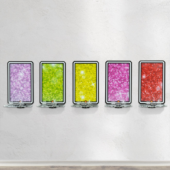 • This wall mount display includes our exclusive background designs and is connected using a single metal cube and two screws.