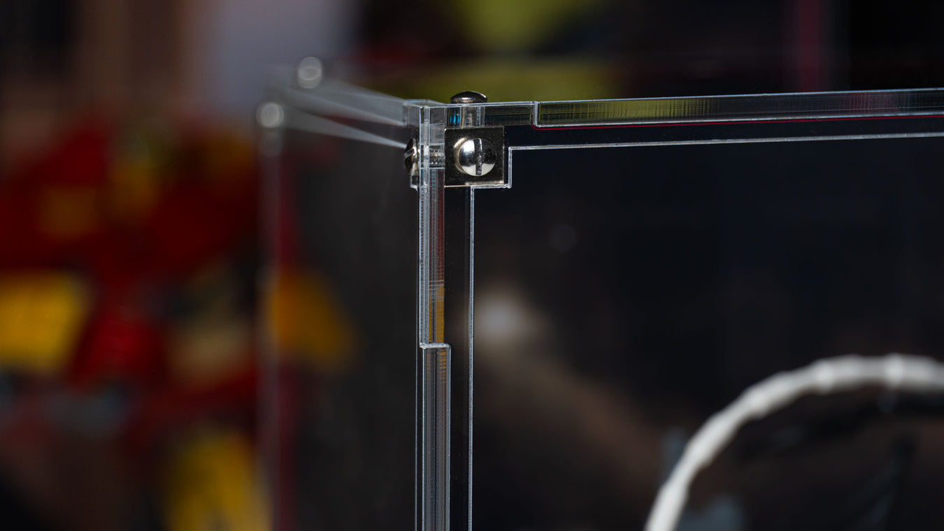 3mm crystal-clear premium acrylic display case, assembled with our uniquely designed screws and connector cubes for a strong and secure structure.
