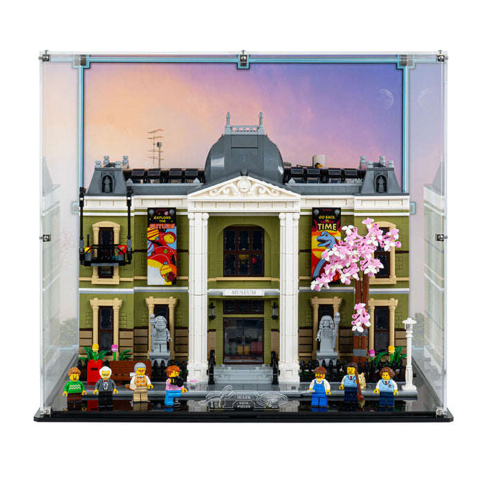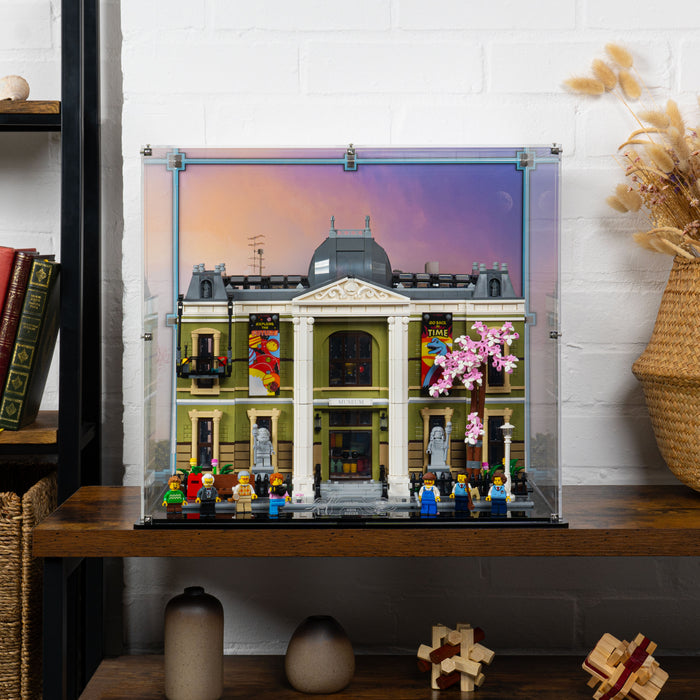 Create your dream display for the LEGO® Icons: Natural History Museum set with our bespoke display case. Our case has been specifically designed for the set and is crafted from premium Acrylic. The case has been built to keep your set 100% dust free and protected. Precisely engineered stems hold your museum in place. An array of embedded studs hold your Minifigures securely in place in front of the museum. Our included informational plaque sits front and centre and showcases the set number and piece count. Our UV printed background has a design that sits seamlessly alongside our other modular displays.