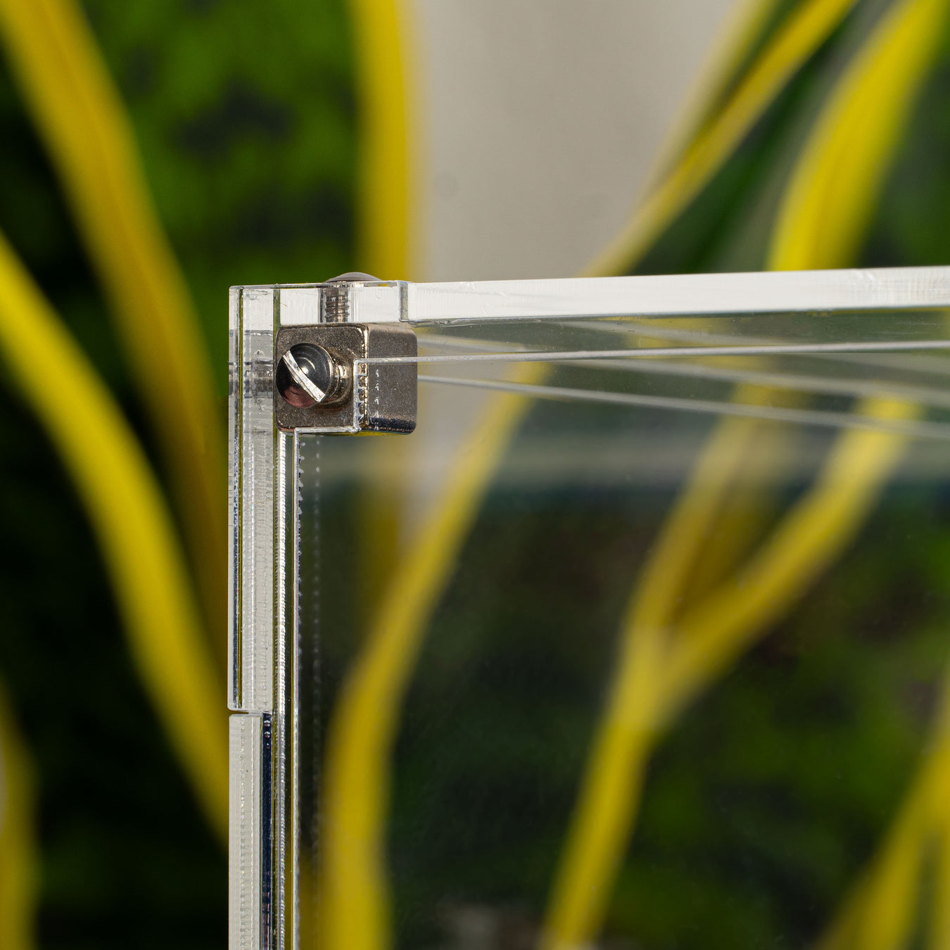 3mm crystal clear premium acrylic display case, assembled with our uniquely designed screws and connector cubes, allowing you to easily secure the case together.