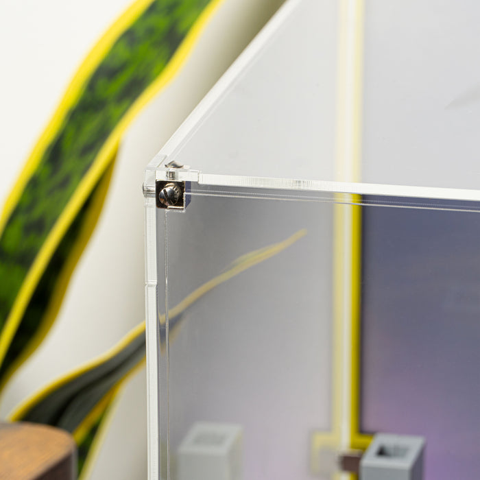 3mm crystal clear premium acrylic display case, assembled with our uniquely designed screws and connector cubes, allowing you to easily secure the case together.