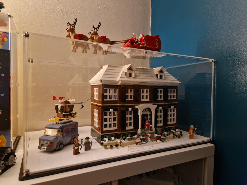 Jump back in time and showcase your favourite scene from the 90's Blockbuster film 'Home Alone', with our custom display case. Upgrade to display your set with a background of a moonlight sky, when the night time shenanigans by The Wet Bandits take place.