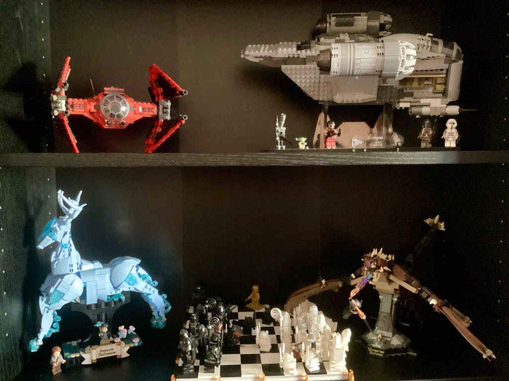 Showcase your LEGO® The Razor Crest™ build flying through hyperspace with our angled display stand.