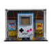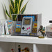The Premium Printed display, featuring a vivid UV-printed base and back panel, recreates the look of the original Game Boy packaging, complete with bold colours and retro grid detailing. A custom centre cut-out securely holds the Game Boy LEGO set, while clear acrylic stands hold the game cartridges and lenticular tiles for a clean and symmetrical display.