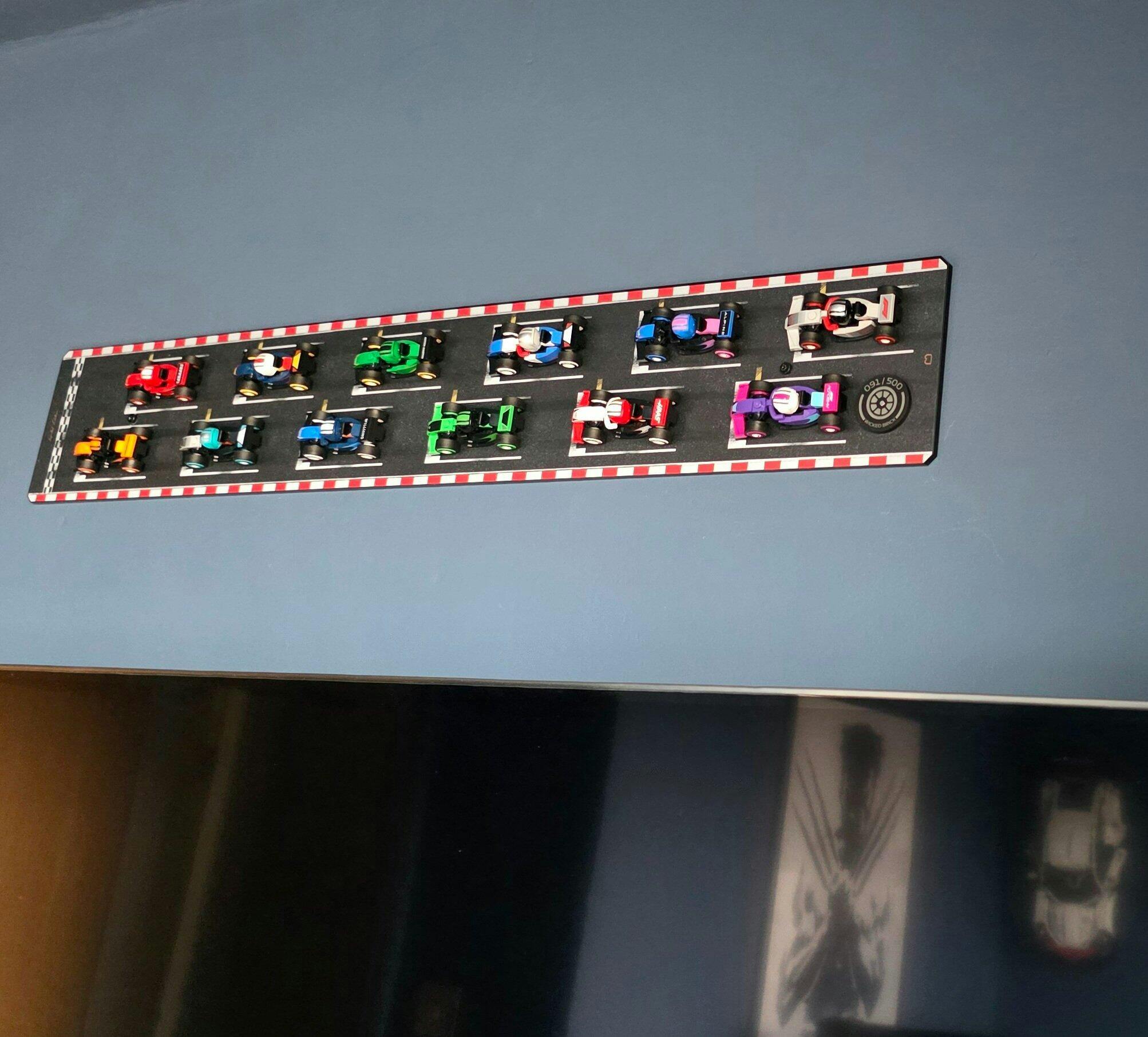 When I started to collect the mini F1 lego cars I knew how I wanted them to be displayed and wicked brick had the answer. Looks perfect with all the cars lined up on the grid 😁.