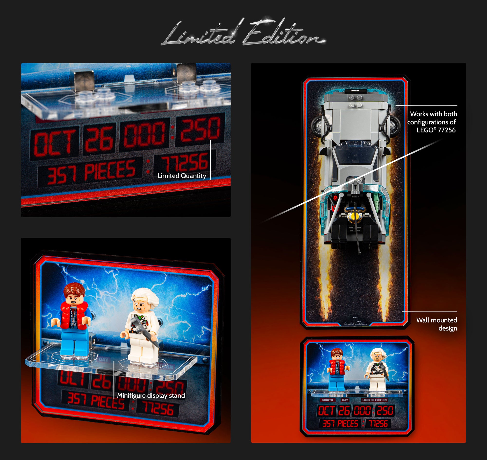 Limited Edition Wall Mounted Displays for LEGO® Speed Champions: Time Machine from Back to the Future (77256) Now Available