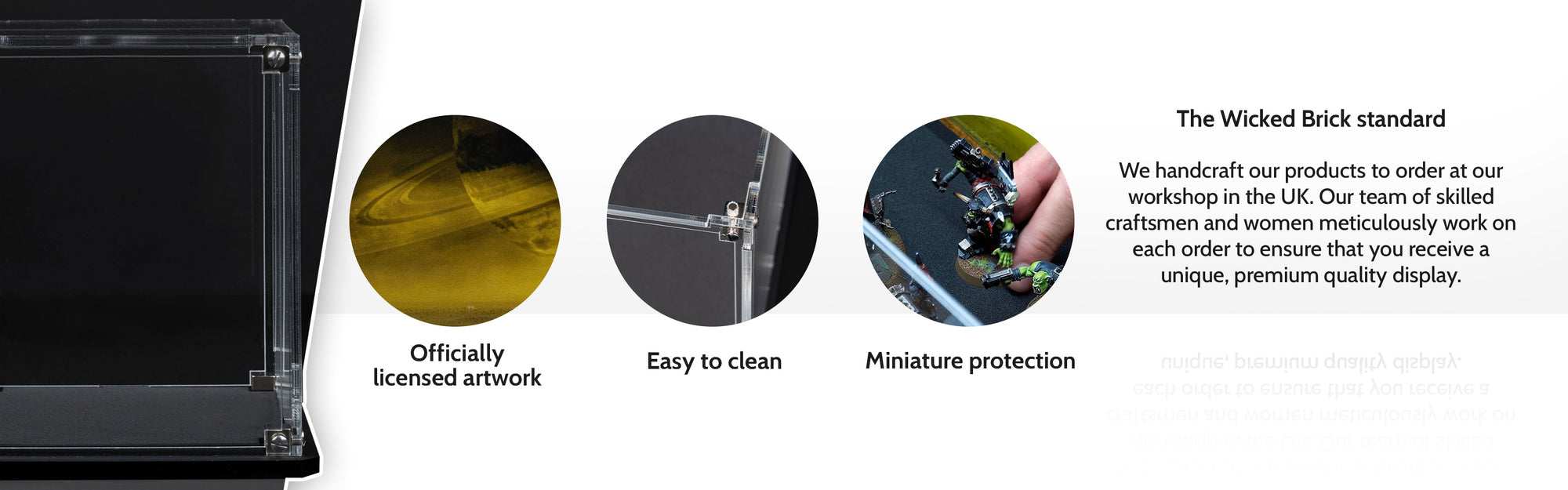 Our modular case design ensures effortless assembly and access. The intuitive magnetic lid enables quick adjustments, or the base can be fully removed when more comprehensive access is needed. Designed to honour the grim resilience of your Warhammer® 40,000 force, our range of army-sized display cases doesn’t just protect your army — it amplifies its presence.